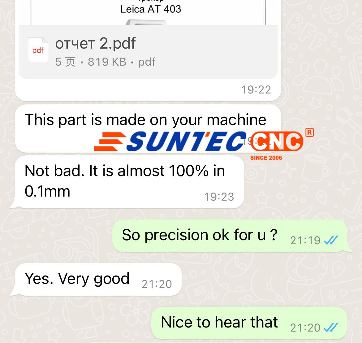 This customer produce parts need very high precision every parts must be 0.1mm . at the begining he doubt suntec 5 axis cnc machine .